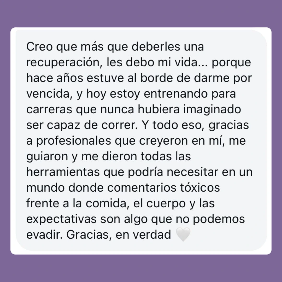 nutricionistas, psicólogos, psiquiatras y terapeutas familiares que trabajan en conjunto para acompañar con empatía y profesionalismo.