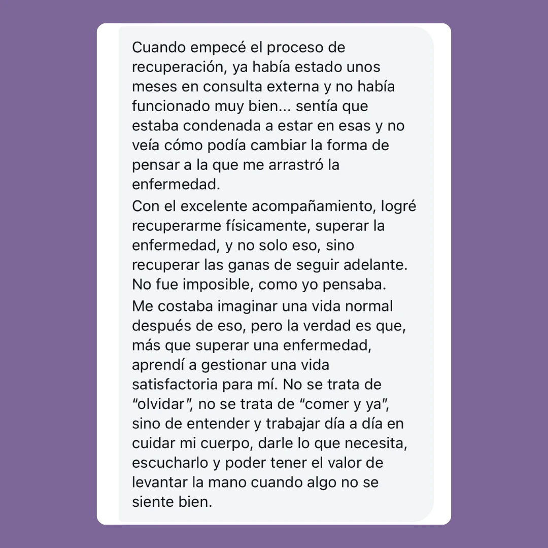 Es un centro especializado en el manejo integral de los Trastornos de la Conducta Alimentaria (TCA), que ofrece un abordaje interdisciplinario para la atención ambulatoria intensiva.